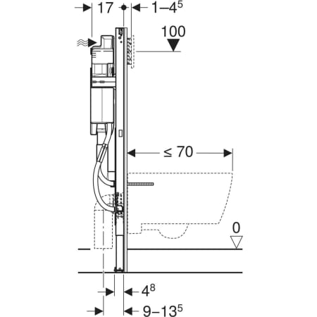 - Für zukünftige Nachrüstung von Geberit AquaClean oder elektronischen Betätigungsplatten, Stromanschluss am Element für WC vorsehen