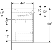 | Farbe / Oberfläche | Waschtisch: weiss Korpus, Front: lava / lackiert seidenmatt |