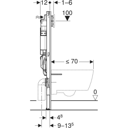 - Pour l'équipement ultérieur de Geberit AquaClean ou de plaques de déclenchement électroniques, prévoir une alimentation sur secteur sur l'élément pour WC